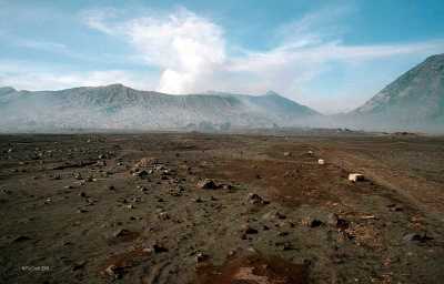 | Mt Bromo, Java, looking across the sand plain. |