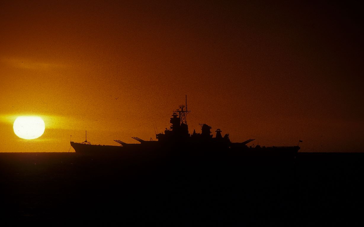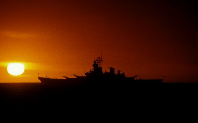| USS Missouri off Fremantle 1987 © PJ Croft 2012 |
