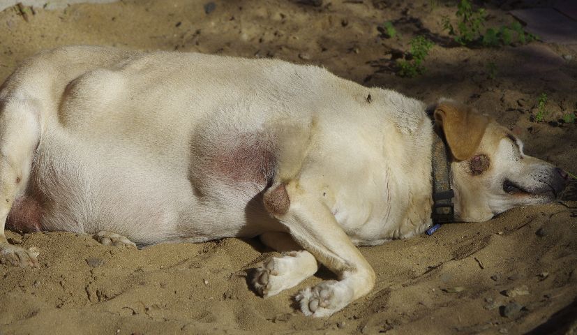It was a beautiful, warm, windless day today and this is Minnie lying asleep in the sun. She’s fine, but you can see the lump in her side and the tumour on her right cheek.