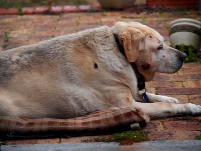 It’s still blue, but thunderstorm blue. Minnie had been outside: