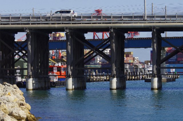 | Fremantle Bridge Sigma 120-400mm @ 600mm (eq.) hand held NB: dashed power lines not in original photo |