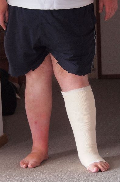 Great legs, eh? I feel like The Mummy. My left leg has a venous ulcer (not as bad as it sounds) and it’s bound up to try to force the fluid back up. I’ve got a bit of cellulitis too, for which penicillin is the answer. An ulcer sounds awful, but it’s just raw skin where the surface has been broken and won’t heal properly. It’s very red and weepy.