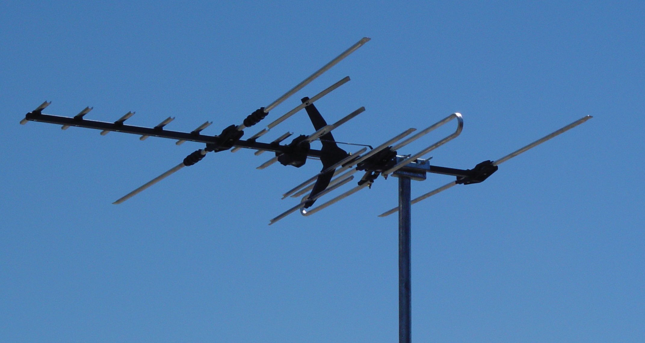 I wonder what happened to the original antenna? Was there ever one installed? I’m the third owner of this house. I’m still in touch with the owners before me and I’m sure they wouldn’t have taken the antenna with them when they moved out. I’m inclined to think that there was never any antenna from the start. It’s quite possible. The builder would have installed the cabling in the roof but it would have been up to the owner to have an antenna installed. Maybe they did what I’ve done – plugged their TV in, saw that it worked and left it at that. Amazing.