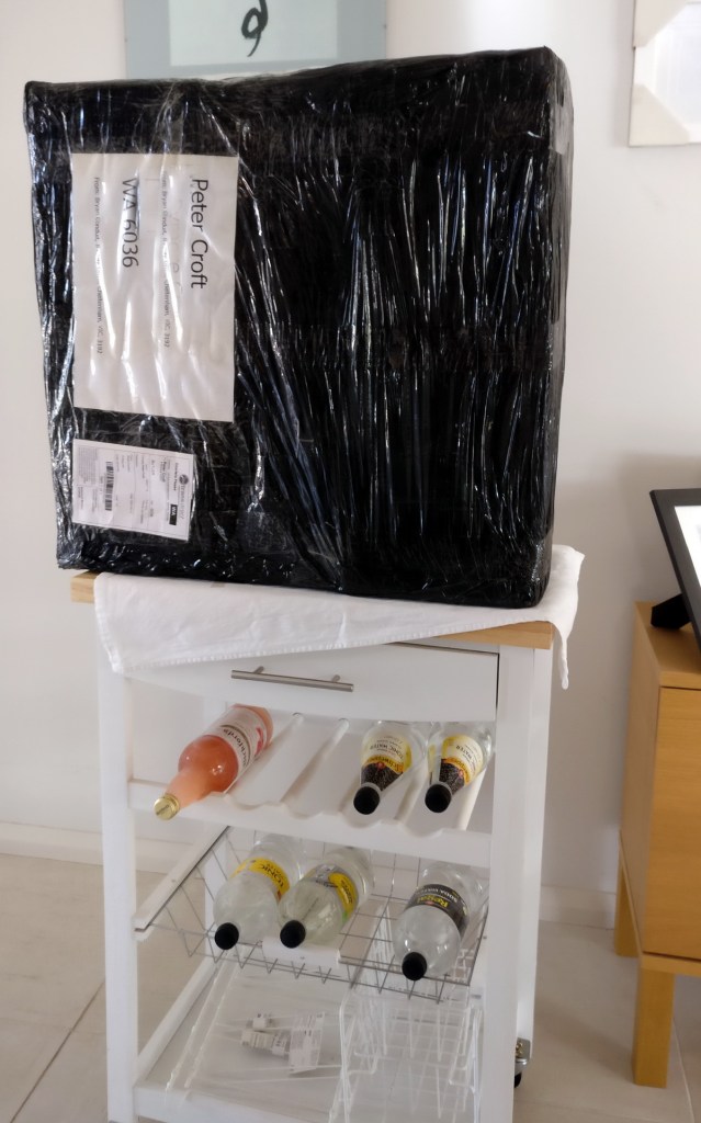 There was a door knock at about 10am and my amplifier has arrived. The guy had put it down on the doormat and as it’s a big, 17Kg box I asked him if he’d lift it and put it onto a small trolley that I had ready.