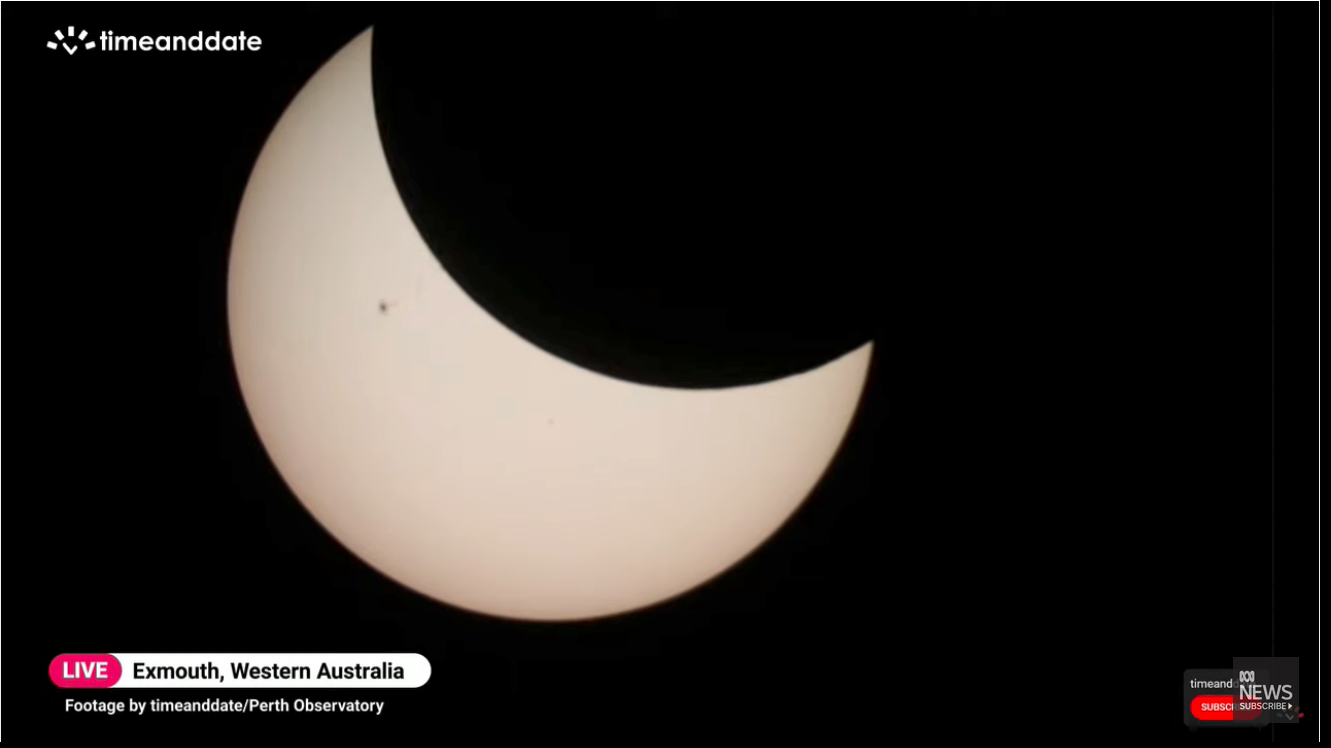 It’s 11.30am on Thursday 20 April 2023 and this is the eclipse at very near totality. There’s a greyness when I look outside and a slight chill in the air. It’s almost totally silent, and the wind has dropped to stillness. No birds are cheeping either. It feels eery.